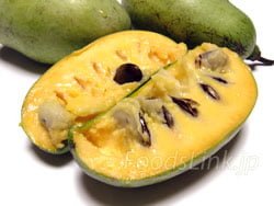 色々と呼び名があり、「ポーポー」、アメリカのカスタードアップル(American custard apple)」