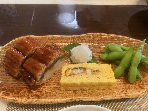 当日は土用の丑の日ということで、うなぎ寿司、う巻き、枝豆が一つになった皿