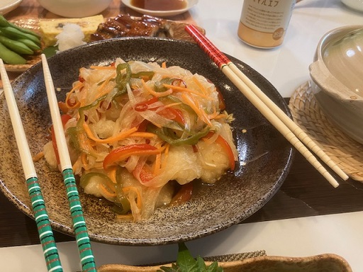 季節の鱧を使った南蛮漬け。うなぎの柳川鍋。お刺身、リクエストのチヂミ。