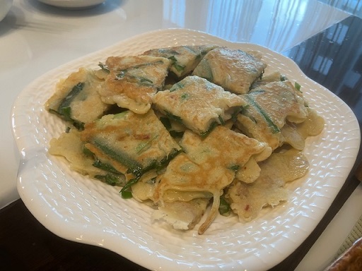 初回はキムチ鍋、前回はふぐ鍋、今回は私がチチミをリクエストし他はおまかせでした。
