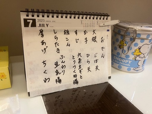 そして、驚きは「おでん」です。お品書きも用意されていて、これには脱帽でした!