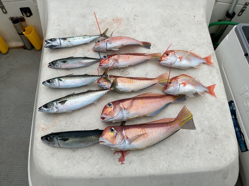 釣果は甘鯛が5匹、レンコ鯛2匹、サバ5匹。
