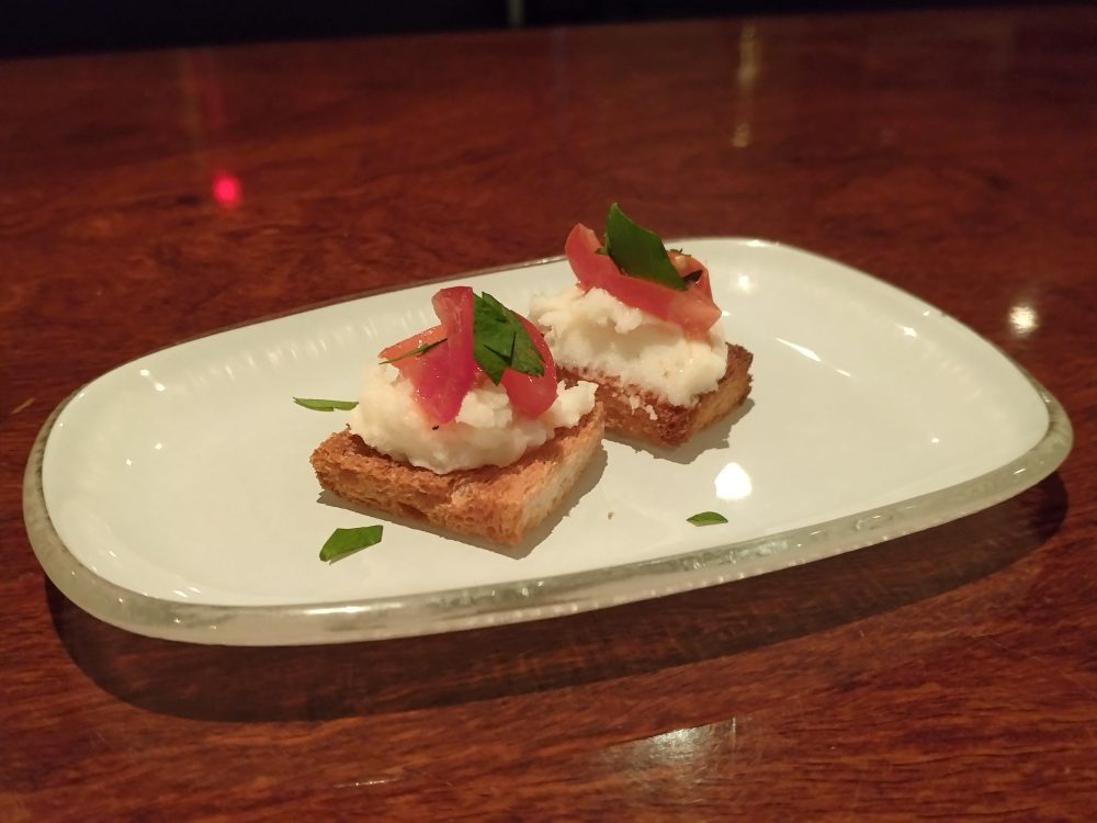 12/24/2024 In bar kikuti By kikuchi お通し 昨日(23日)いらっしゃったお客様が店内を見渡し、「クリスマスの”ク”の字もないのがベスパらしくていいよねぇ…ワハハハ」とお褒めの言葉をいただいたので😆 今日はお通しで演出してみました! マッシュポテトとトマトのブルスケッタ。 皆様、素敵な夜をお過ごしください★