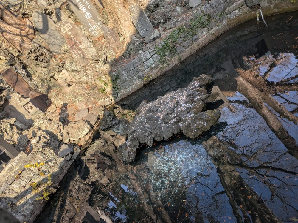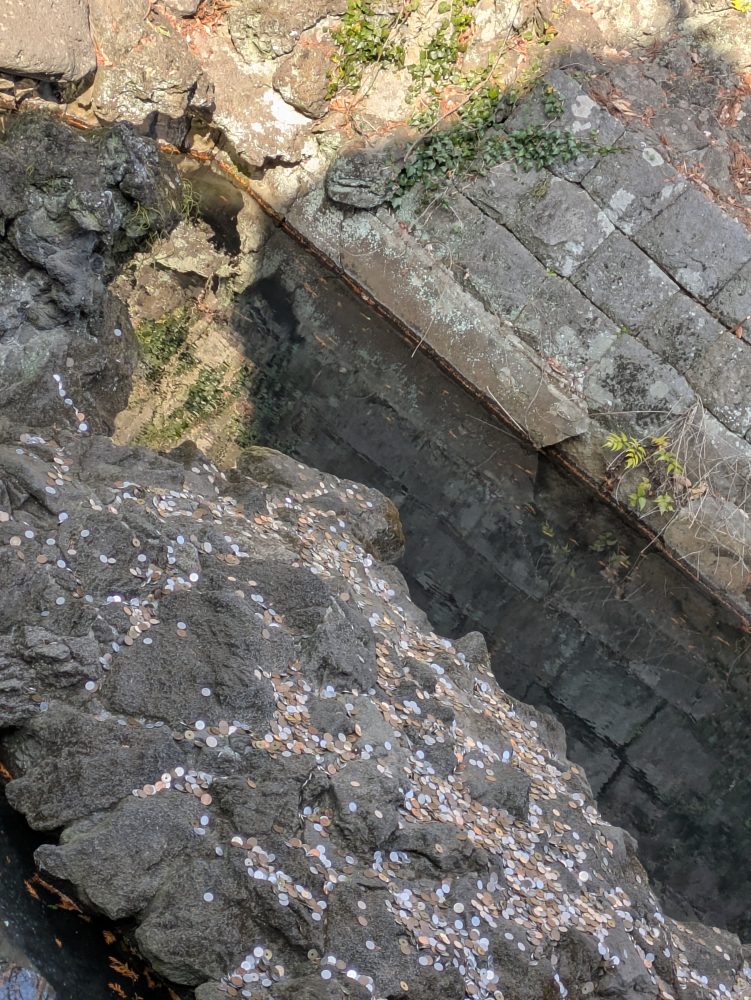 亀さんらしき背中が小銭たらけ。